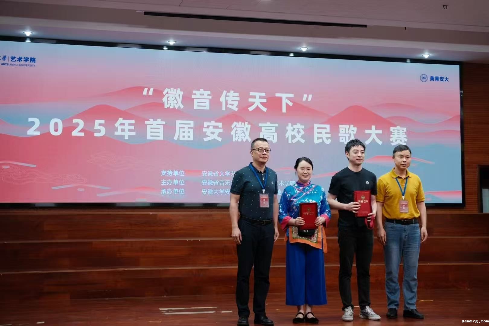 6月11日,“徽音传天下”首届安徽高校民歌大赛决赛在安徽大学音乐厅举行,来自安徽艺术学院、安徽大学、安徽师范大学等10所高校的学子齐聚一堂,以精湛的演绎,将 30 首精心遴选的安徽民歌作品搬上舞台。我校艺术学院孙寅舟、徐天维两位老师指导的女生小合唱《数麻雀》以全省第二名的优异成绩斩获银奖。