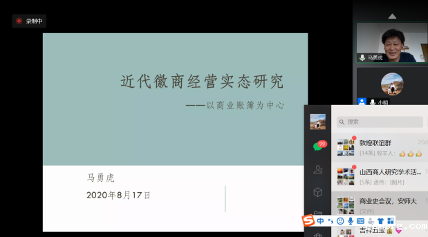 8月17日,由中国会计博物馆主办的“商业史料与会计史话语体系重构”云讲坛第四期顺利举办。我校马勇虎教授应邀以“近代徽商经营实态研究——以商业账簿为中心”为题,通过大量的账簿史料,展示了近代徽商发展的多个精彩瞬间,阐释了有关近代徽商经营的一系列重要问题。