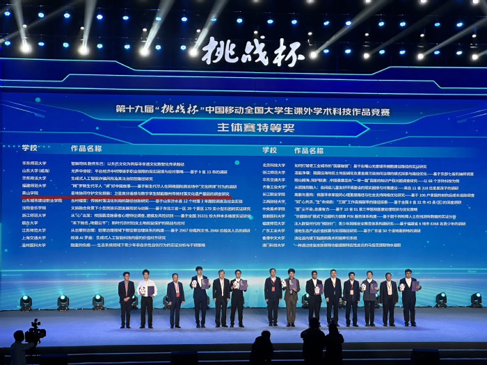 10月31日至11月3日,第十九届“挑战杯”全国大学生课外学术科技作品竞赛终审决赛在南京大学仙林校区举行。我校《星地协同守护文化根脉:卫星高分遥感与数字孪生赋能徽州传统村落文化遗产基因的调查研究》荣获全国特等奖。
