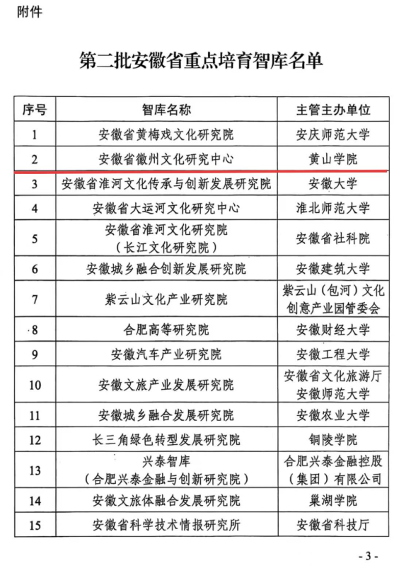 近日,中共安徽省委宣传部公布2025年第二批安徽省重点培育智库立项名单,我校“安徽省徽州文化研究中心”成功获批“安徽省重点培育智库”,实现学校社科类省级智库历史突破。