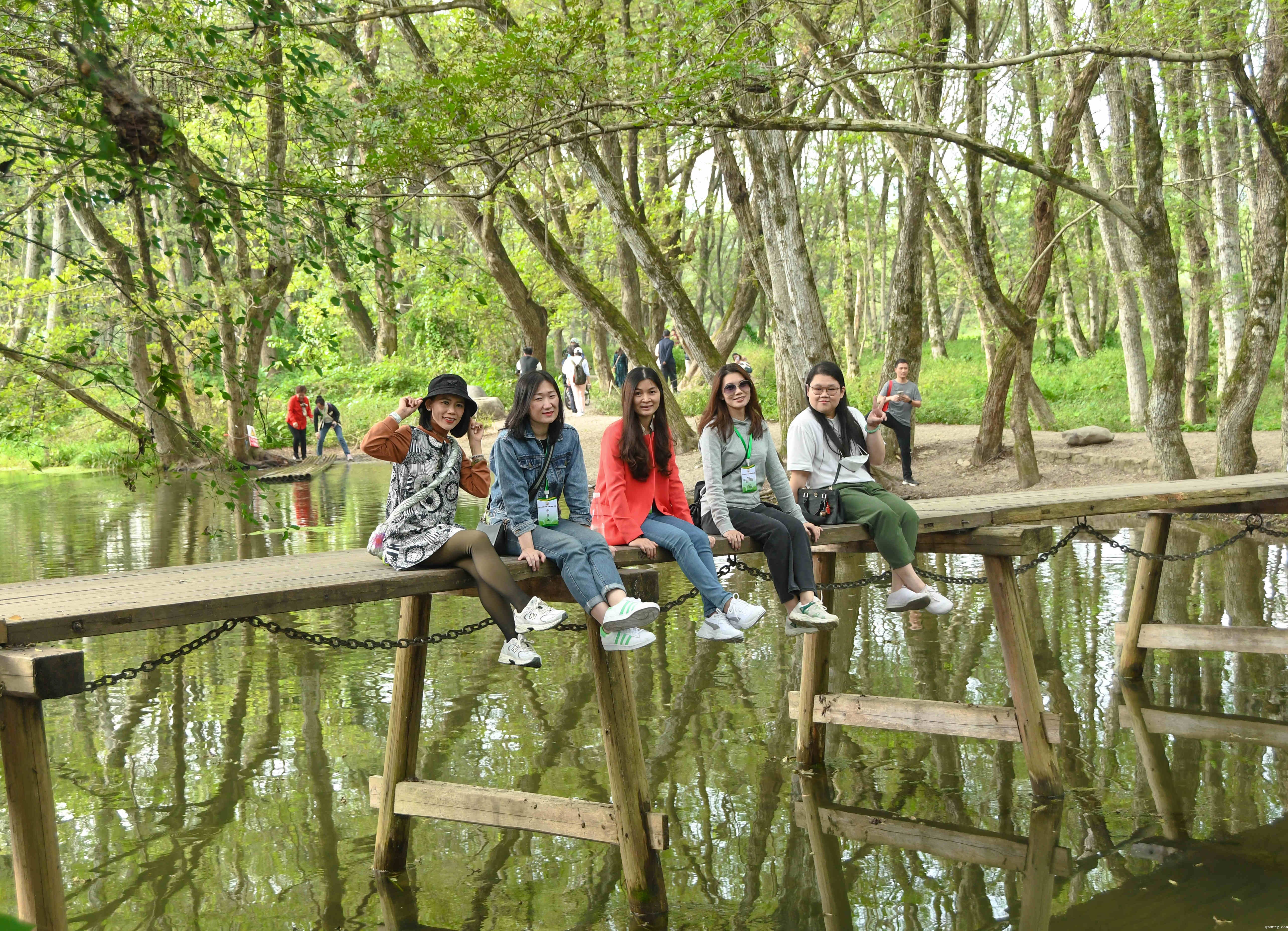 在徽州区西溪南村,学员们走上简易而充满野趣的木桥,碧绿的河水从桥下流过,在“绿野仙踪”中感受着“诗与远方”的舒畅惬意。古朴的民居、精美的雕刻、厚重的历史,大家在享受自然风光、古村风情的同时,体验了徽州山水人文的魅力和千年古村落的无穷韵味。