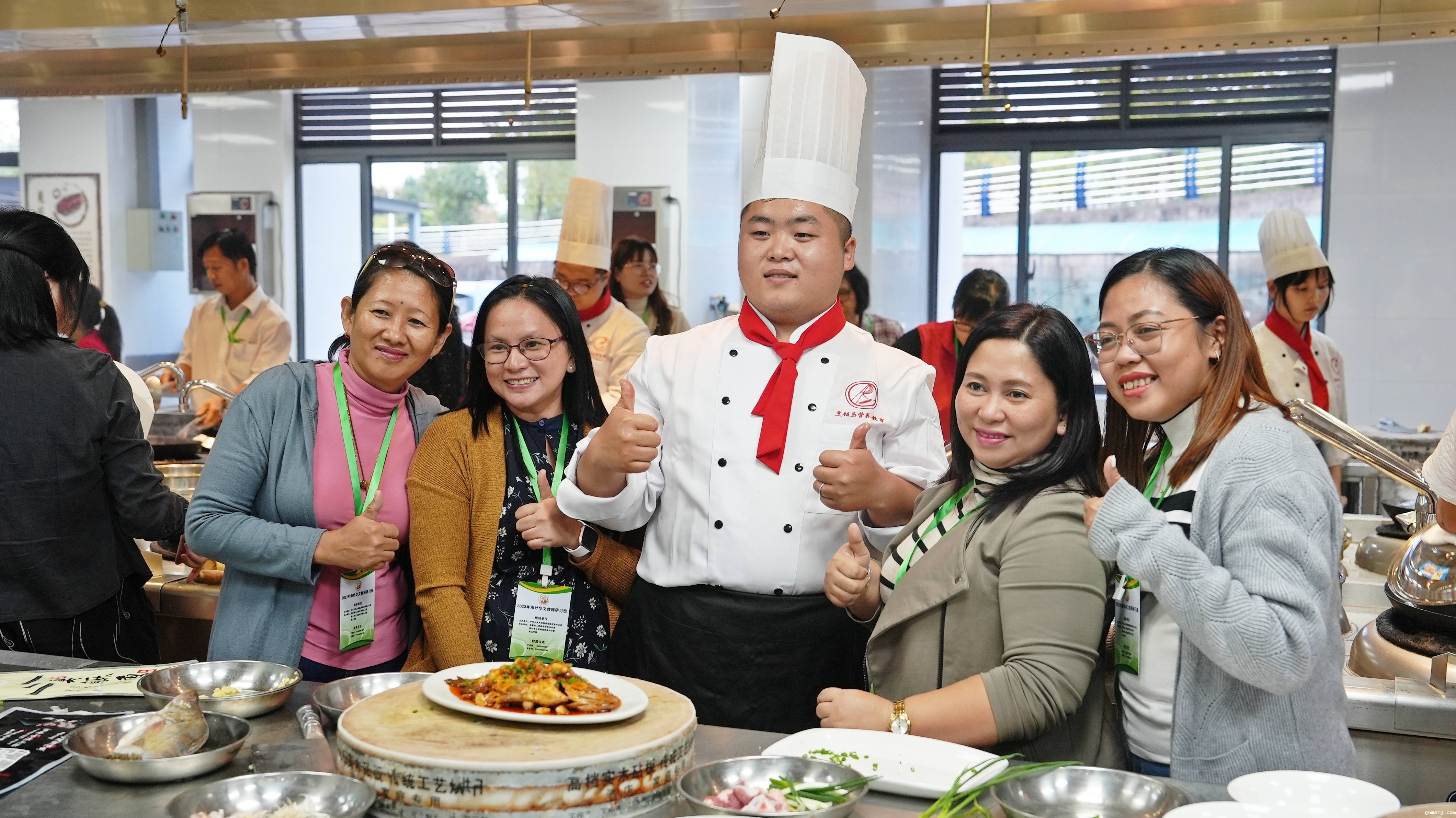 在徽菜烹饪技艺专题课上,学员们体验了徽州美食制作。授课教师现场制作了一品锅和臭鳜鱼两道特色美食,并为全体学员讲解了徽菜的特点。演示教学结束后,学员们亲手制作并品尝了臭鳜鱼。暨南大学新西兰中文实验学校校董张海赞叹道:“这次开设的徽菜烹饪课程很有意义,不仅让我了解到徽州的特色美食,还了解了徽州的文化。返校后,我们将更好地宣传徽州美食和文化,让更多人知道徽菜,来到徽州享受徽州美食,传播徽州文化。”