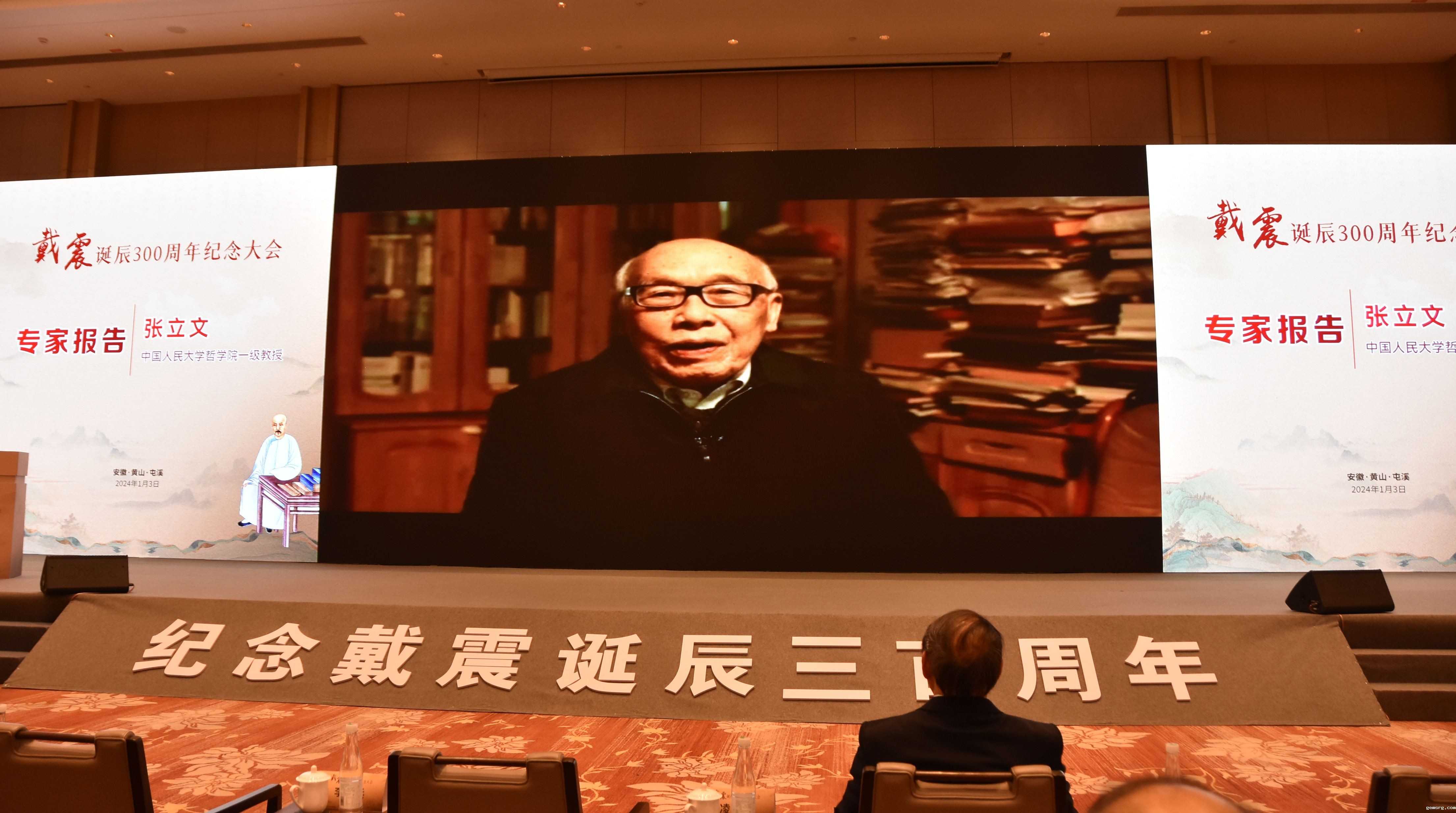 主旨报告环节,中国人民大学哲学院一级教授张立文、中共中央党校哲学部教授王杰(人民出版社哲社编辑室编审方国根代为报告)、南京大学文学院教授李开、武汉大学哲学院教授吴根友四位专家分别以现场或视频方式围绕戴震研究作了主旨报告。