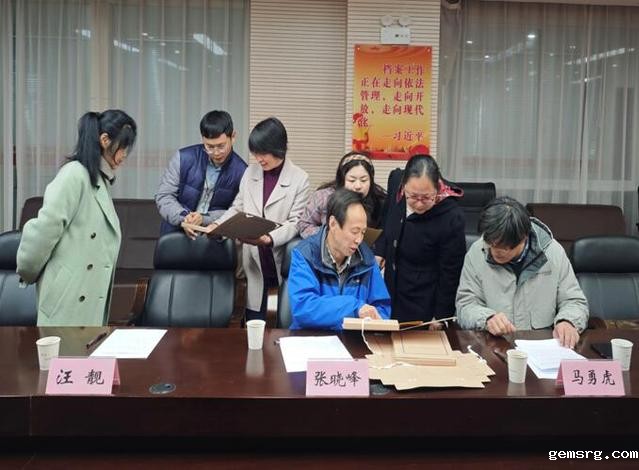 马勇虎介绍了我校团队成员,对文书整理的工作部署、具体流程、实操细节等方面提出了建议和意见,并对后期的整理出版进行了指导。随后,团队成员通过文书和编目原件,现场考察和探讨了文书整理的相关问题。