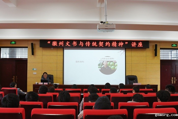 吴秉坤从契约的概念、契约精神的内涵、徽州文书中的传统契约精神、借鉴与反思等四个方面全面阐述了现代法治与徽州文书的关系,并结合徽州文书的案例,诠释了中国传统契约精神的现代价值。他表示,现代商业经济社会中契约关系的内在原则是自由、平等和守信,强调的是法律面前人人平等,其对现代自由、民主、法治的构筑产生了重大而深刻是影响。中国传统契约精神的核心是诚信守约,仁义道德是其最高标准,契约的履行不能违背道德原则。