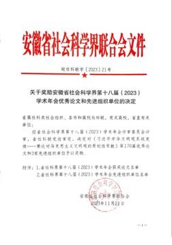 我校教师参加安徽省社会科学界第十八届(2023)学术年会征文获奖