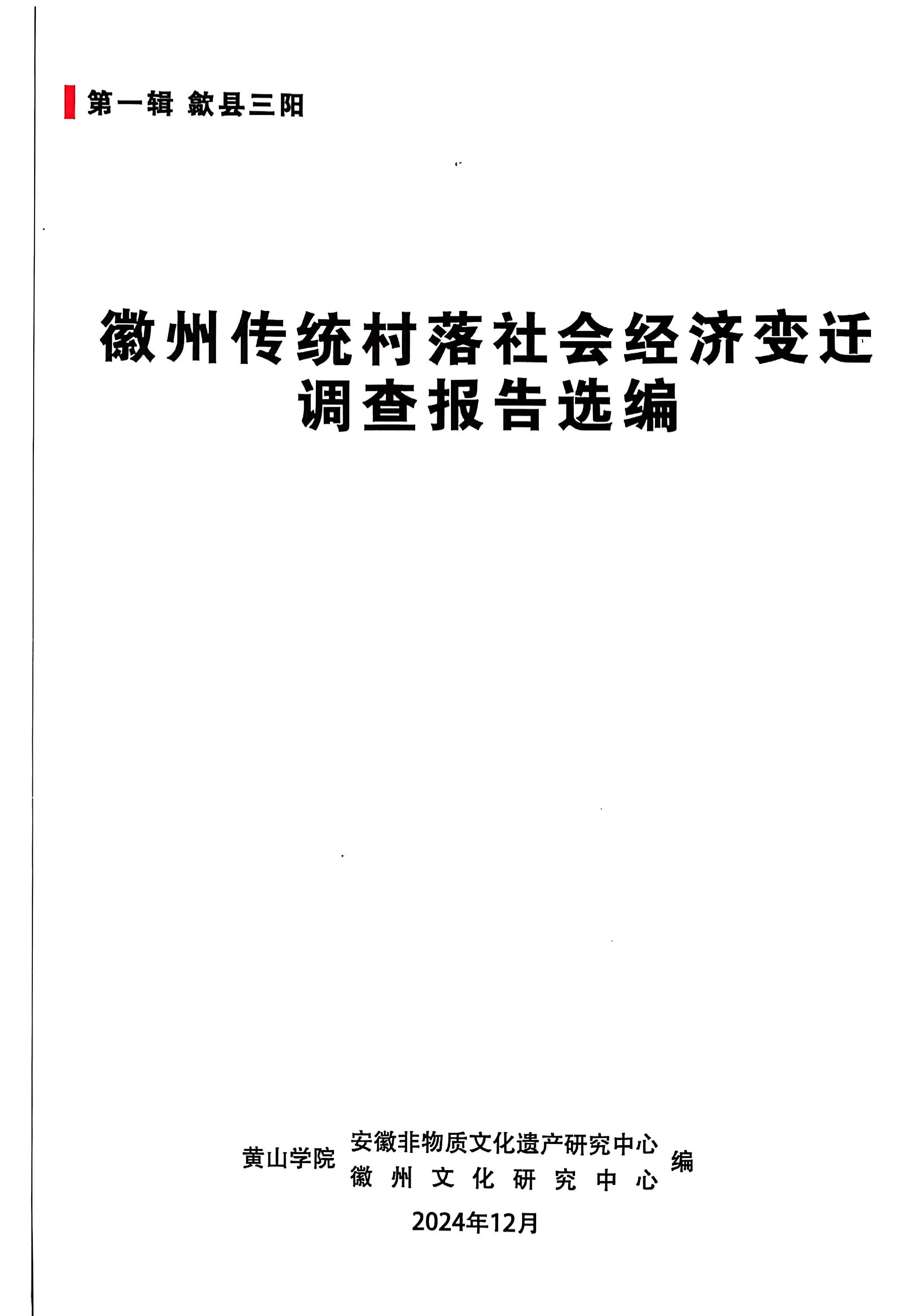 近日,由我校省级科研平台安徽非物质文化遗产研究中心(徽州文化研究中心)组织编撰的《徽州传统村落社会经济变迁调查报告选编》印刷完稿。