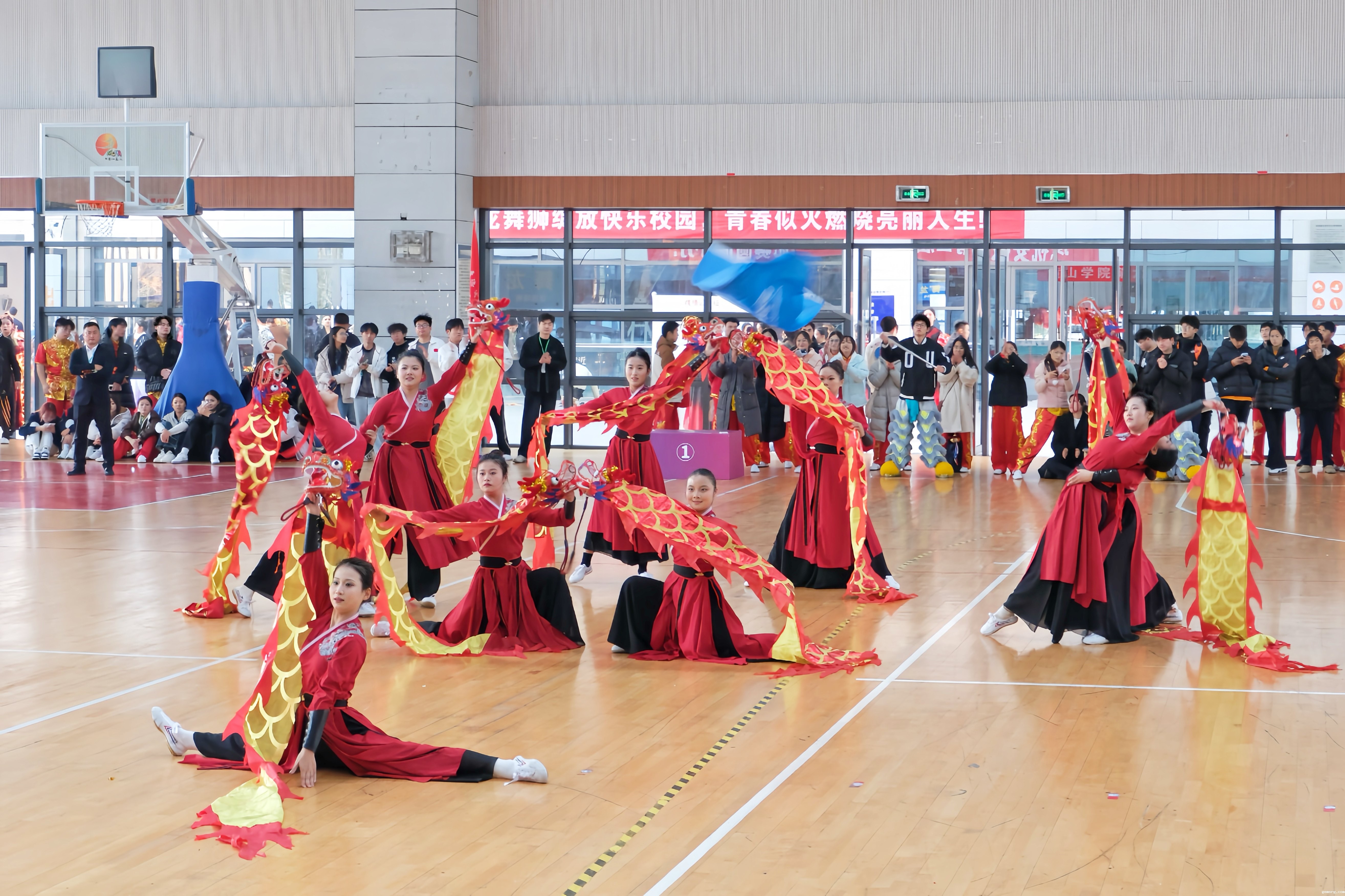 2日上午,2024年安徽省学生体育联赛大学生舞龙舞狮比赛在我校风雨操场开幕。我校党委副书记、院长李庆宏,校党委委员、副院长张小明,安徽省学校体育协会副秘书长陈晓荣,黄山市体育局、黄山市教育局相关负责人出席开幕式。