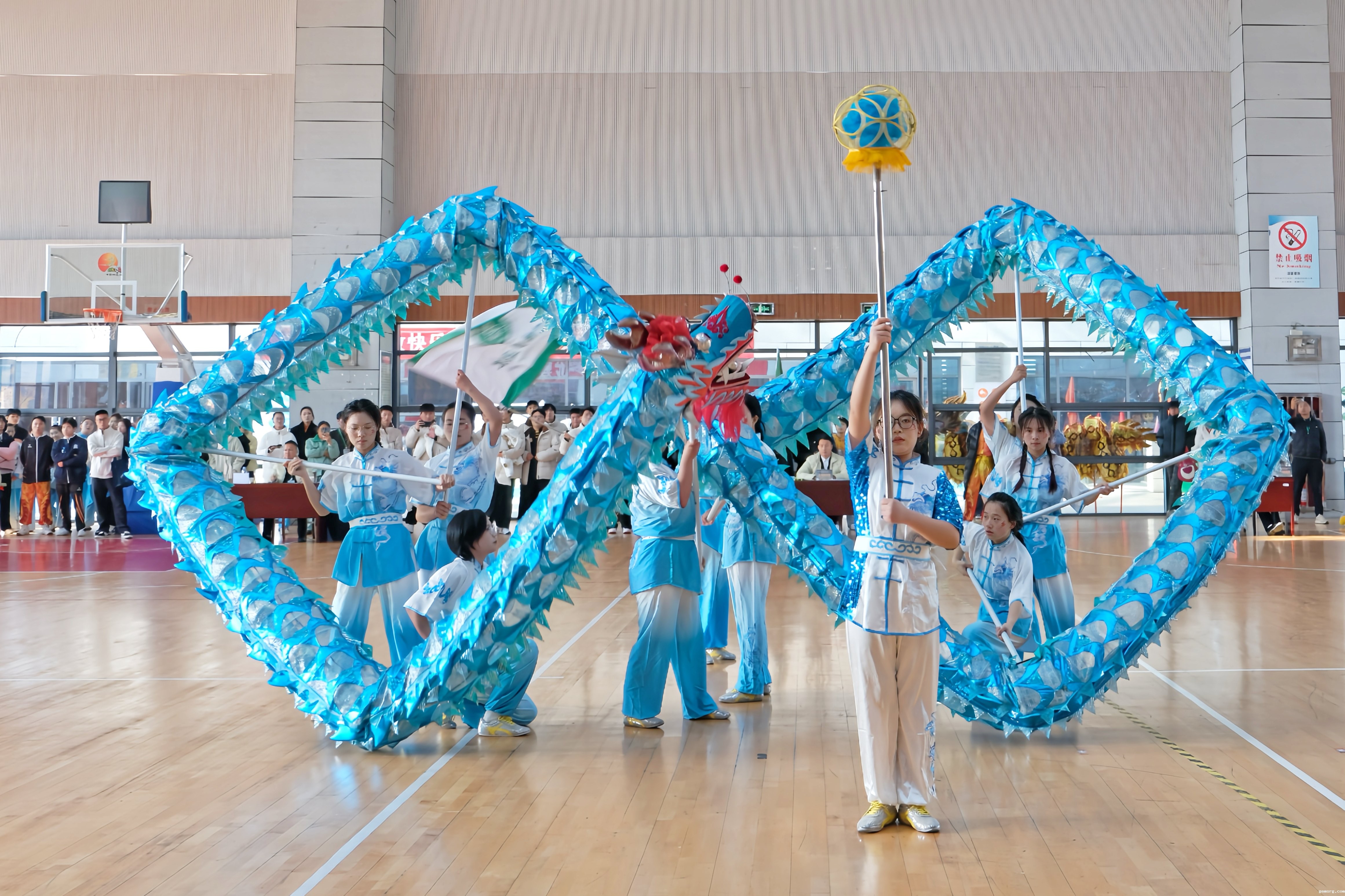 此次比赛共设甲、乙、丙三个组,设置了舞龙规定套路、舞龙自选套路、竞速舞龙、创意龙狮、传统南狮及彩带龙自选套路6个大项。来自全省27所高校的506名运动员参赛。