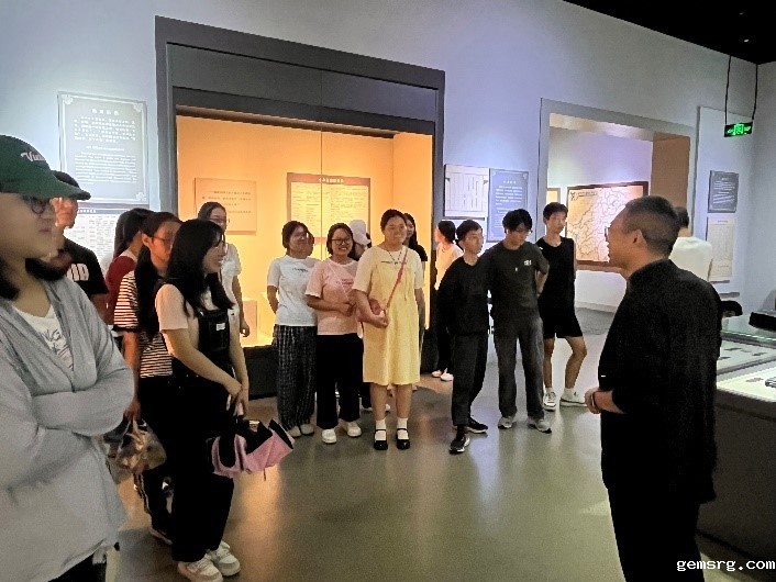 在天下徽商陈列展区,陶小兵老师结合中国共产党第二十届中央委员会第三次全体会议公报的内容以“徽州优秀文化中的改革创新精神”为主题,给同学们上了一堂博物馆里的思政课。陶小兵结合展区“红顶商人”胡雪岩案例进行了深入阐述,他表示,徽州的商业、文学、科技等方面取得的伟大成就与徽州文化中蕴含的开放交流、学习创新精神是分不开的,这与中国共产党第二十届中央委员会第三次全体会议公报中“中国式现代化是在改革开放中不断推进的,也必将在改革开放中开辟广阔前景”的论述高度契合。他还表示,徽州的发展是在相互联系中统筹推进的,既有徽商经济的繁荣、也有优秀传统文化的兴盛、还有建筑、艺术和科技的突破。